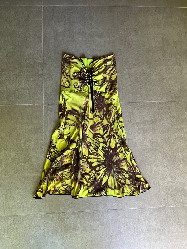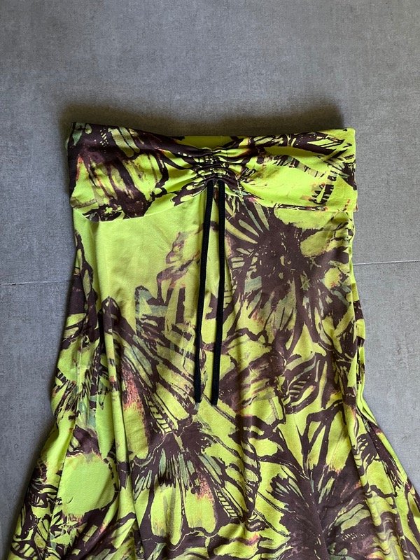 tiene dos maneras de usarse como se puede ver en las fotos, haciendo un doblez generando una doble tela en el busto y acortando el largo del vestido